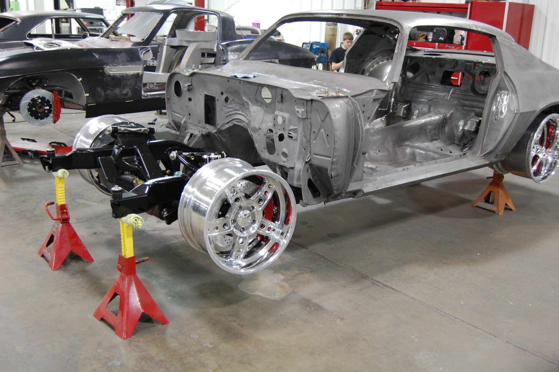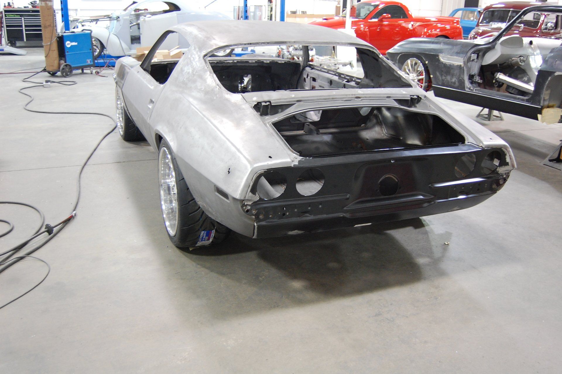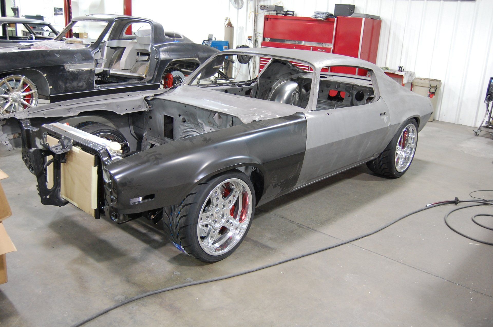 Scott came to us looking to have a Camaro built that was similar to the Black camaro that we had built for ourselves a few years earlier. We improved on Scott's car with the components chosen. We went with everything we could get from Detroit Speed and Engineering for the chassis. We also chose an 810 hp blown LS7 engine from Mast Motorsports. The project took shape after completing renderings from Eric Brockmeyer. We decided on machining one off wheels.