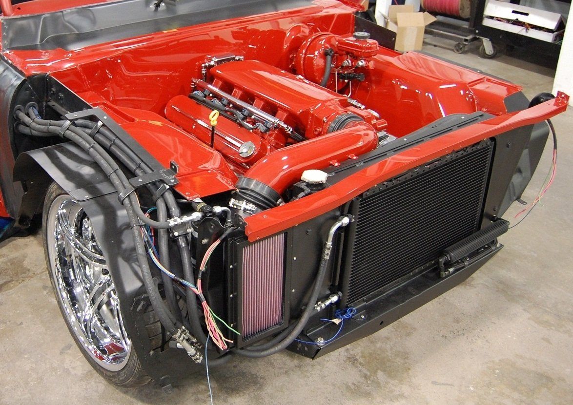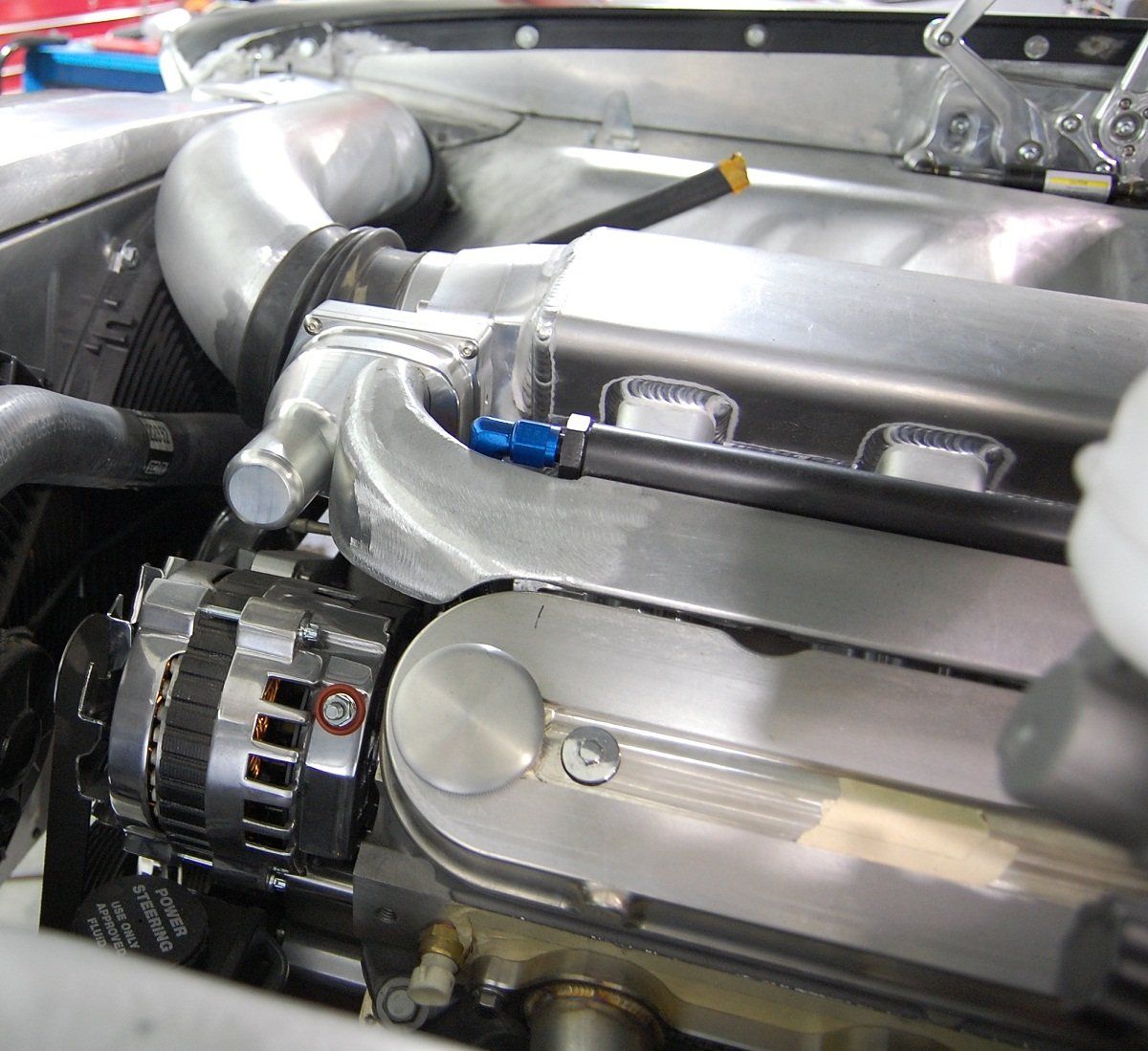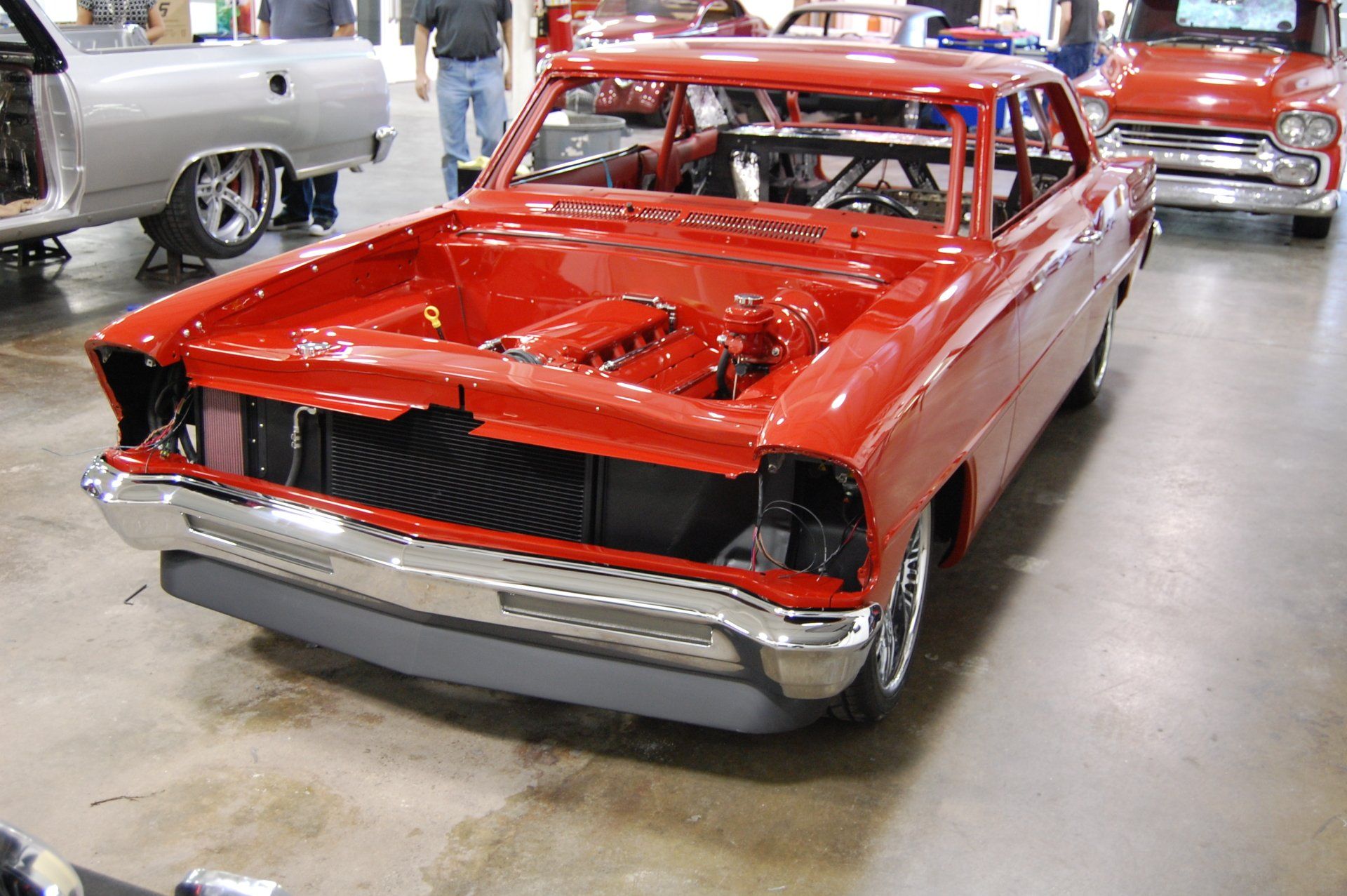 Jimmy has owned a few Novas in the past, for this one he wanted to Autocross it. With DSE suspension, an LSX 376 and a Tremec 6 Speed, Jimmy has no problem whipping this car around the cones. We designed and machined many parts to this Nova including head lights, tail lights, exhaust tips, wheels and even the steering wheel to match. Sporting Glasurit GM 74 Fire Red, we consider Jimmy's Nova two main colors, Red and Chrome, the chrome was handled by Advanced Plating.