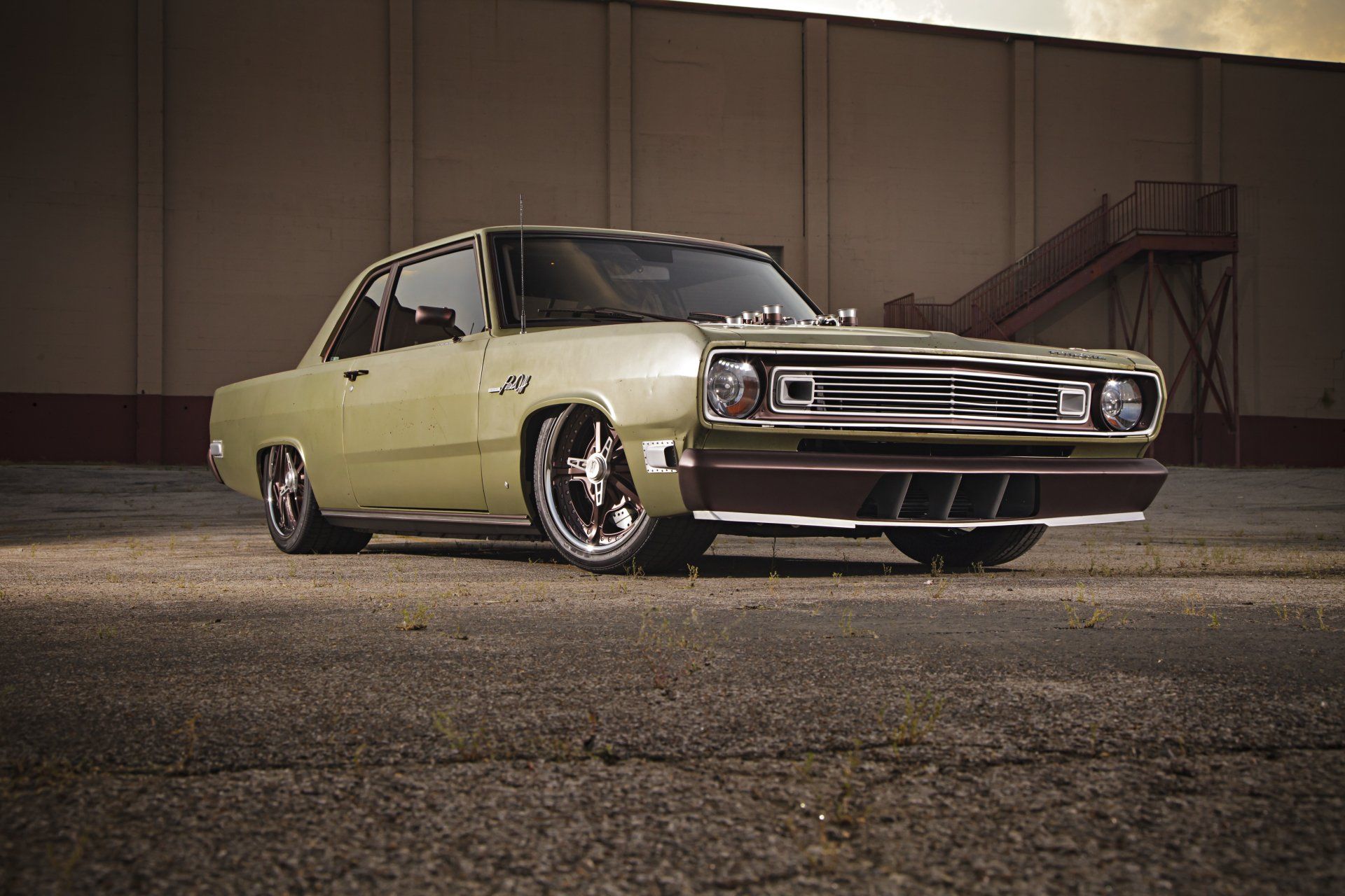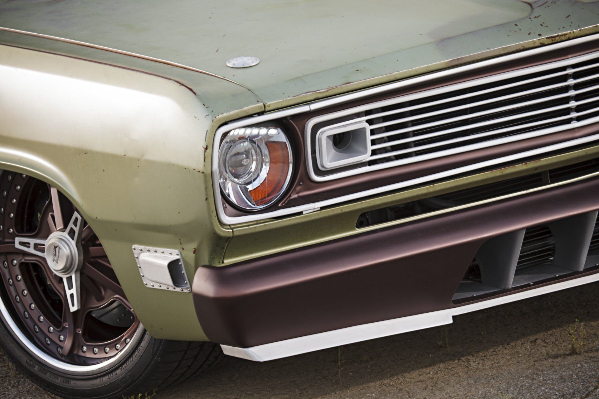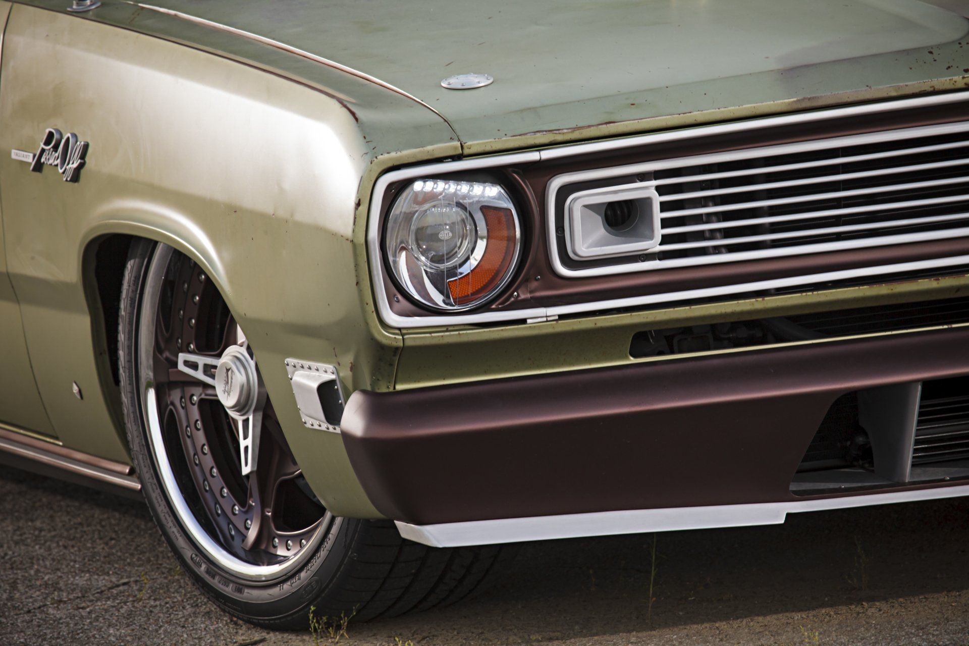 This is "Pissed Off", Don Montgomery's 1969 Plymouth Valiant. The name came from talking on the phone one day with Don discussing the project when we had first mocked the car up and set it down on over its wheels. After seeing the pictures I told Don that is looked like it was pissed off sitting there. He laughed and said that needs to be the name of the car. So we went ahead and badged the car with that.
